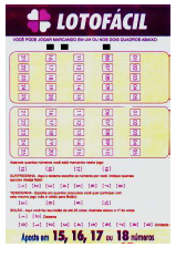 Entre diferentes jogos de loteria, está a LOTOFÁCIL. O jogo consiste em um sorteio de 15 números, sem repetição, de um total de 25 números disponíveis. É permitido apostar de 15 a 18 dezenas, sendo que uma aposta simples consiste na marcação de 15 dezenas. Assim, uma pessoa que fez 816 apostas simples distintas terá a mesma chance de ganhar que uma pessoa que marcou 18 dezenas em um único cartão.