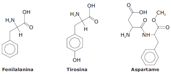 A vida moderna tem exigido do homem uma mudança de hábitos, dentre eles, o alimentar. Os Fast Foods surgem como alternativa rápida para a alimentação, no entanto dietas calóricas não balanceadas, aliadas ao sedentarismo, têm levado a um aumento da massa corporal. Em busca de alternativas para dietas restritivas, o setor alimentício tem desenvolvido produtos ligth e diet. O aspartame é utilizado como edulcorante (adoçante) em alimentos dietéticos e, após sua ingesta, sofre hidrólise sendo convertido em fenilalanina, um aminoácido aromático. O organismo humano metaboliza o excesso desse aminoácido, inicialmente pela enzima fenilalanina-hidroxilase, produzindo outro aminoácico: a tirosina. Pessoas portadoras de fenilcetonúria ‒ uma doença de herança autossômica recessiva, não conseguem realizar essa etapa metabólica. A doença é diagnosticada por meio do teste do pezinho e pode causar retardo mental.
