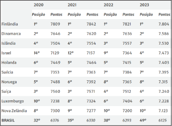 [20] Na edição de 2023 do WHR, o Brasil figura na