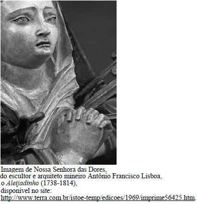 IV – Entre os versos de Gregório de Matos, a seguir, e a imagem de Nossa Senhora das Dores, podemos destacar a antítese como figura no soneto e o jogo de claro-escuro na escultura.