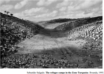 Considering the text on Exodus and the photograph taken by Salgado, of refugee camp ∈Rwanda, judge the following item.
