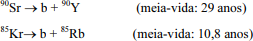 O estrôncio-90 e o criptônio-85, além do decaimento beta, também emitem radiação gama, uma vez que, em todo processo de decaimento radioativo natural, ocorre emissão desses dois tipos de radiação eletromagnética.