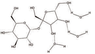 Considere que a figura abaixo mostra as fórmulas estruturais da água e do açúcar.