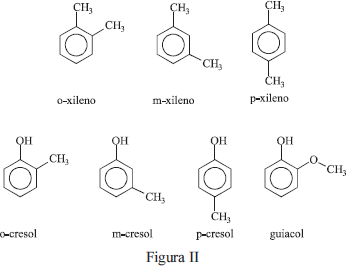 Na figura II a seguir, são apresentadas as estruturas moleculares de alguns compostos recentemente identificados em múmias e que pertencem ao óleo de cedro (Cedrela fissilis).