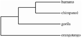 De acordo com o esquema abaixo, que expressa a mais aceita filogenia dos grandes macacos, o ancestral comum entre chimpanzés e humanos que deveria apresentar o comportamento descrito no texto seria o gorila.