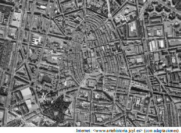 radioconcéntrico, con calles radiales (desde el centro a las