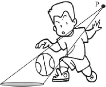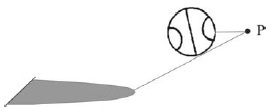 Na situação ilustrada acima, uma criança faz quicar uma bola iluminada por uma fonte de luz pontual, que, posicionada no ponto P, projeta a sombra da bola no chão. Considere que a bola é uma esfera, o chão é um plano horizontal e, portanto, a sombra da bola é uma região delimitada por uma elipse. A respeito das propriedades físicas e geométricas envolvidas nesse fenômeno, julgue o item.