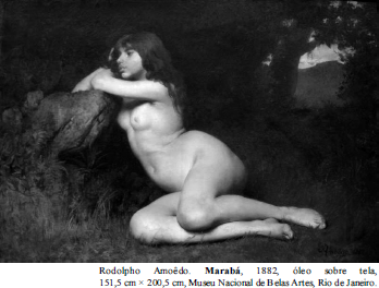 Marabá é rejeitada por ter olhos com “cor das safiras” (v.7) e cabelos loiros e anelados, características que subvertem o padrão de beleza metropolitano, uma vez que ela não atende ao tipo comum dos nativos brasileiros, com “olhos bem pretos, luzentes” (v.14) e “cabelos bem lisos, corridos” (v.25).