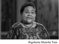 An indigenous Guatemalan woman of the K’iche’ branch of the Mayan culture, Rigoberta Menchú has dedicated her life to promoting the rights of indigenous peoples. She became active ∈ the women’s rights movement as a teenager and later was a prominent workers’ rights advocate. In 1992 she was awarded the Nobel Peace Prize ∈ recognition of her work for social justice and ethno-cultural reconciliation for indigenous peoples ∈Guatemala and is the first indigenous person to receive the prize.