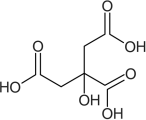 O ácido cítrico (C6H8O7), também conhecido como ácido 2-hidroxi-1,2,3-propanotricarboxílico, é um ácido fraco triprótico, cujos pKa são: pKa1 = 3,15; pKa2 = 4,77; pKa3 = 6,40.