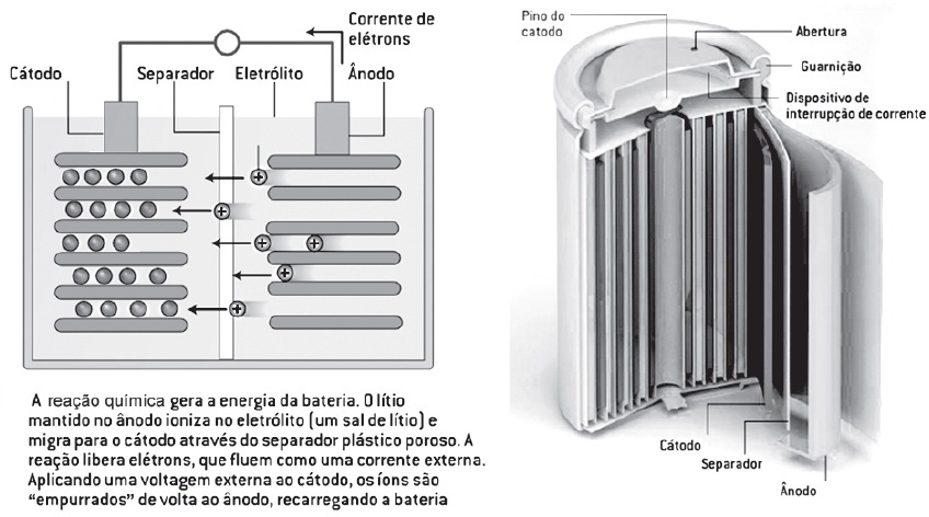 Grandes recalls de fabricantes de baterias de íons de lítio para notebooks suscitaram questões sobre como essas fontes de energia podem aquecer a ponto de pegar fogo. Igualmente válida é a dúvida sobre por que os acidentes não são mais frequentes: são poucos proporcionalmente às centenas de milhões de baterias vendidas anualmente. As células eletroquímicas de íons de lítio empregam vários materiais, mas quase todas são recarregáveis, como as usadas em câmeras fotográficas e telefones celulares, que utilizam óxido de lítio-cobalto no cátodo e grafite no ânodo. Embora essa formulação seja “de certo modo inerentemente insegura”, a fabricação cuidadosa e os dispositivos de segurança embutidos limitaram os acidentes a poucas ocorrências. Mesmo assim, os fabricantes de baterias têm aumentado a capacidade de carga em determinada célula devido à demanda dos fabricantes de eletrônicos por maior durabilidade. Portanto, agora a margem de erros é ainda menor. Aumentando o número de íons na célula, os fabricantes quadruplicaram a capacidade energética desde seu lançamento comercial em 1991. (FISCHETTI. 2013. p. 10-11).