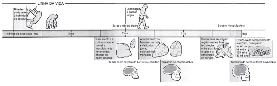 Levando-se em consideração o encontro de ferramentas primitivas em escavações na África e evidências de marcas desses objetos em ossos que sugeriram avanços além do alcance cognitivo de primatas e de acordo com as informações do texto, é correto afirmar: