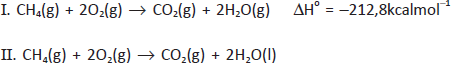 O metano é o principal componente do gás natural e, quando queimado, gera dióxido de carbono e água. Com base nessas informações e nas equações químicas I e II, analise as afirmativas e marque com V as verdadeiras e com F, as falsas.