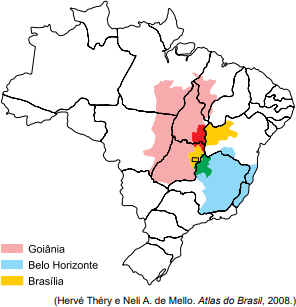 Examine o mapa que mostra a região de influência da Grande Metrópole Nacional, S