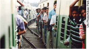 A view of passengers aboard trains connecting the suburbs of Kolkata, India. The Asia-Pacific region is urbanizing rapidly with 1.77 billion people, 43% of the region’s population, living ∈ urban areas