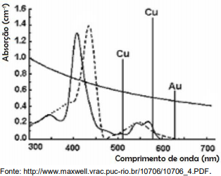 O gráfico a seguir representa a absorção da energia luminosa pelos cromóforos em função do comprimento da onda luminosa. A água, por possuir baixa absorção da energia luminosa, não está presente no gráfico.
