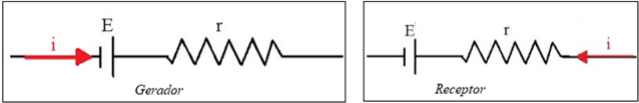 Fisicamente, a bateria do exemplo no excerto de texto acima é considerada um gerador reversível, isto é, no processo de descarga é um dispositivo que entrega potência ao circuito externo se comportando como gerador -, já no processo de carregamento este dispositivo se comporta com um receptor, pois recebe potência do circuito externo.