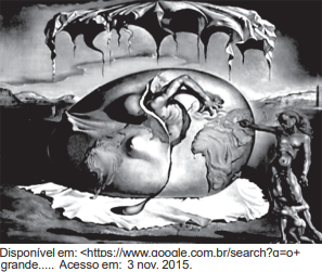 A imagem destacada pertence a um grande artista do Surrealismo, Salvador Dali, cuja pintura explora, além da percepção lógica, o lado ilógico, inconsciente da mente humana que contradiz a razão.