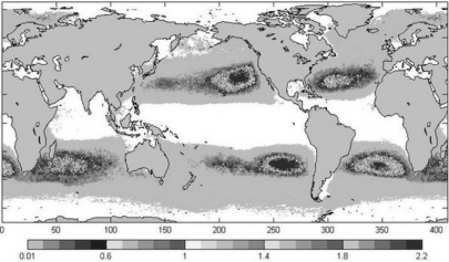 Before Malaysia Airlines Flight 370 went missing, sea trash was not a global headliner. However, as hundreds of objects sighted off the Australian coast as possible aircraft debris turn out to be discarded fishing equipment, cargo container parts, or plastic shopping bags, a new narrative is emerging ∈ the hunt for the missing plane: There is more garbage out there than you think. Most of it is plastic. And marine life ingests it, with catastrophic consequences. Kathleen Dohan, a scientist at Earth and Space Research ∈Seattle, Washington, plotted the movement of debris ∈a time-lapse video that shows where objects dropped into the ocean will end up ∈ ten years. The objects migrate to regions known as garbage patches. The Pacific and Atlantic Oceans have two patches each, north and south. The Indian Ocean’s garbage patch is centered roughly halfway between Africa and Australia. The term “patch” suggests this floating detritus is packed together ∈ an oceanic version of a landfill. Instead, these “patches” are actually huge zones where debris accumulates but floats free, circulating continuously. So it’s possible for sailing ships and other small boats to inadvertently sail into a garbage patch region and encounter rubbish. About 90 percent of the debris ∈ all five garbage patches is plastic, says Marcus Eriksen, a marine scientist and founder of the 5 Gyres Institute, which works to reduce pollution from disposable plastics. “This is relatively new if you think about plastic. Only since the 1950s have consumers used plastics. Now, a half-century later, we are seeing an abundant accumulation of microplastics from all single-use, throwaway plastics like bags, bottles, bottle caps, kitchen utensils. I have pulled cigarette lighters from hundreds of bird skeletons.”