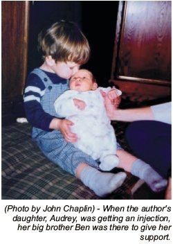 administered the immunizations ∈ her thigh. Baby Audrey winced momentarily, then