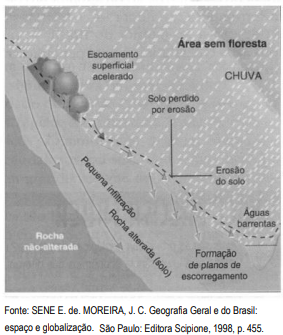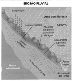 Nos períodos chuvosos do ano são frequentes os movimentos de massa. No esquema a