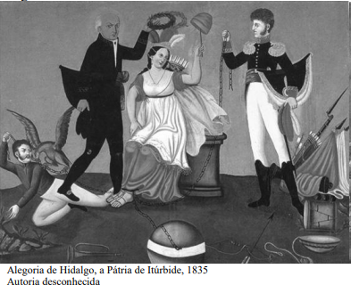 III. A rebelião mexicana de independência representada na imagem 1, conduzida por Hidalgo e seu exército popular, teve continuidade com o líder Morellos, que em 1813 por meio de um congresso com apoio de Itúrbide, proclamou a independência do México.