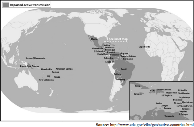 Considering the map and the text About Zika Virus Disease, it is correct to say that