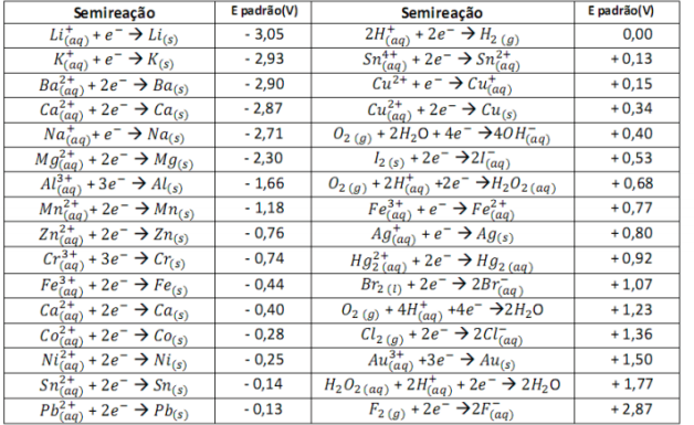 Química > Potenciais de Eletrodo e Espontaneidade > Séries de Reatividade Química