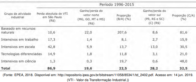 ( ) A desconcentração industrial se consolidou em direção ao vetor norte e sul, desestabilizando a economia paulista no conjunto das transformações da indústria brasileira nas duas últimas décadas.