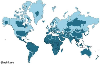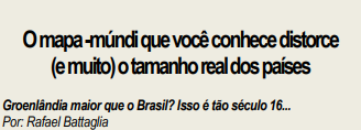 Projeção Mundial de Mercator com o tamanho real dos países adicionados