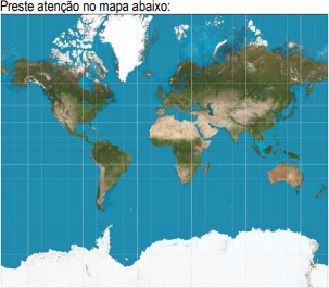 1. Elaborada à época das grandes navegações, a projeção de Mercator atendeu aos interesses das nações colonizadoras (europeias), apresentando um proposital exagero das terras situadas no Hemisfério Norte como forma de demonstração de poder e superioridade.