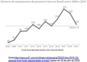 (fonte:https://www12.senado.leg.br/noticias/especiais/especialcidadania/expectativa-de-vida-de-transexuais-e-de-35-anos-metade-da-medianacional/expectativa-de-vida-de-transexuais-e-de-35-anos-metade-da-medianacional acesso em 26 de julho de 2020)
