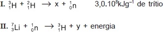 6 kJ de energia na explosão. A fusão nuclear é o processo de liberação de energia a partir da matéria existente no Sol, nas estrelas e na bomba termonuclear de hidrogênio. A extensão da reação de fusão do trítio com deutério, representada pela equação nuclear