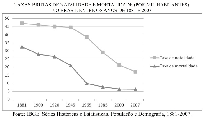 A partir da década de 1960, o Brasil vem registrando uma queda acentuada em suas
