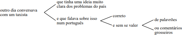 Assinale o esquema que representa CORRETAMENTE a estrutura sintático-semântica do fragmento extraído do texto. Desconsidere a pontuação e as letras maiúsculas.