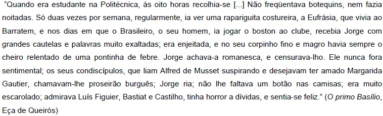 Leia o excerto do romance O primo Basílio, de Eça de Queirós, para responder à q