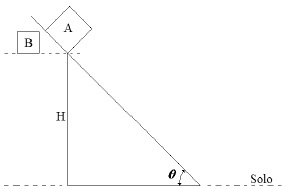 Dois blocos, A e B, de dimensões desprezíveis são abandonados, partindo do repou
