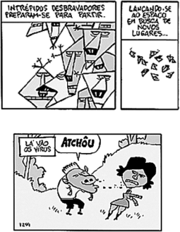 A comunidade científica ainda debate se os vírus devem ser entendidos como seres vivos ou não. Os vírus são, basicamente, partículas proteicas e se encontram obrigatoriamente no interior celular. Nos humanos, os vírus podem causar uma série de doenças, desde um simples resfriado até mesmo doenças de alto potencial letal, como a gripe H1N1, além de dengue, zika e chikungunya, alguns dos quais podem ser transmitidos, como sugere a tirinha, por um simples espirro.