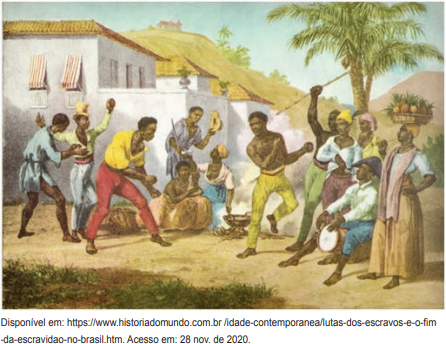 A imagem e o texto a seguir referem-se à escravidão no Brasil que teve duração do início do século XVI ao final do século XIX.
