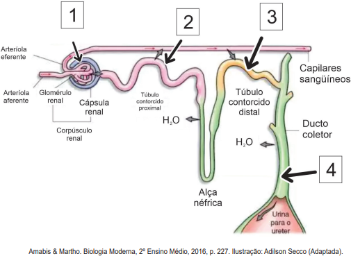 O desenho a seguir representa o néfron, unidade funcional do rim humano. <img sr
