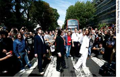 Hundreds of people gathered at the world’s most famous zebra crossing on August to mark the 50th anniversary of the day The Beatles were photographed on it, creating one of the best-known album covers ∈ music history and an image