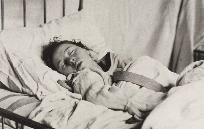 Una mujer con camisa de fuerza, diagnosticada con histeria, en una foto publicada en 1889. WELLCOME TRUST