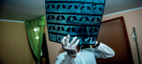 Un médico revisa radiografías de un paciente con coronavirus en un domicilio de las afueras de Lima (Perú). /AFP / ERNESTO BENAVIDES Valentina Raffio
