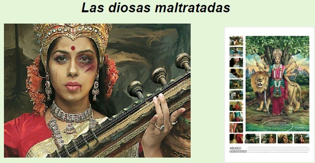abundancia y Saraswati, diosa de la sabiduría, también han sido maltratadas. Posan la primera con su flor de loto, la segunda