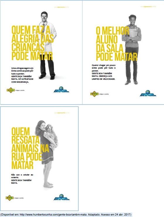 I. Com o slogan "Gente boa também mata", os anúncios associam crimes de trânsito a pessoas que praticam boas ações, alertando que todos podem cometer imprudências ao volante e, portanto, são passíveis de cometer crimes no trânsito.