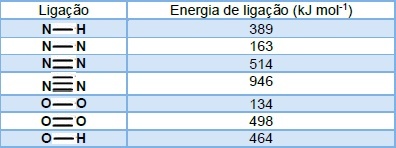 Acerca da reação de sequestro de oxigênio pela hidrazina e das informações apresentadas no quadro, analise as seguintes afirmativas: