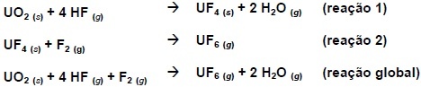 O funcionamento da maioria dos reatores nucleares civis baseia-se no isótopo 235 do urânio. O urânio natural apresenta uma distribuição isotópica de aproximadamente 0,72% de 235U e 99,28% de 238U. Para sua utilização em reatores, o urânio deve ser enriquecido até atingir um teor de 3 a 4% em 235U. Um dos métodos utilizados nesse processo envolve a transformação do minério de urânio em U3O8 sólido (yellow cake), posteriormente convertido em UO2 sólido e, finalmente, em UF6 gasoso, segundo as reações representadas pelas equações:
